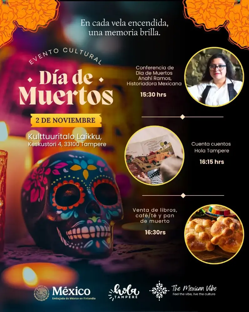 Este evento busca promover el idioma español y la cultura mexicana en Tampere, compartiendo historias, sabores y costumbres que nos conectan más allá de las fronteras.
